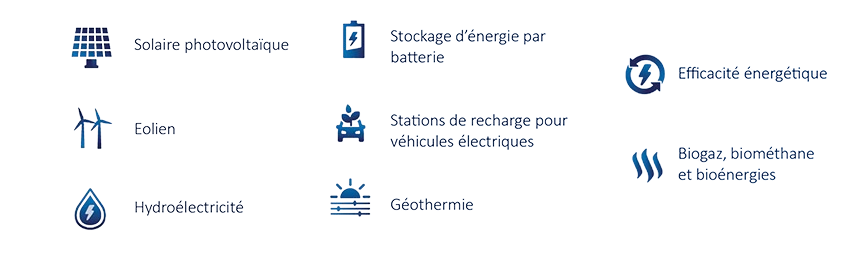 - En direct en capital (titres de capital ou assimilés) ou en dette (titres obligataires ou assimilés ou octroi de prêts en direct) dans des projets d’infrastructure éligibles.